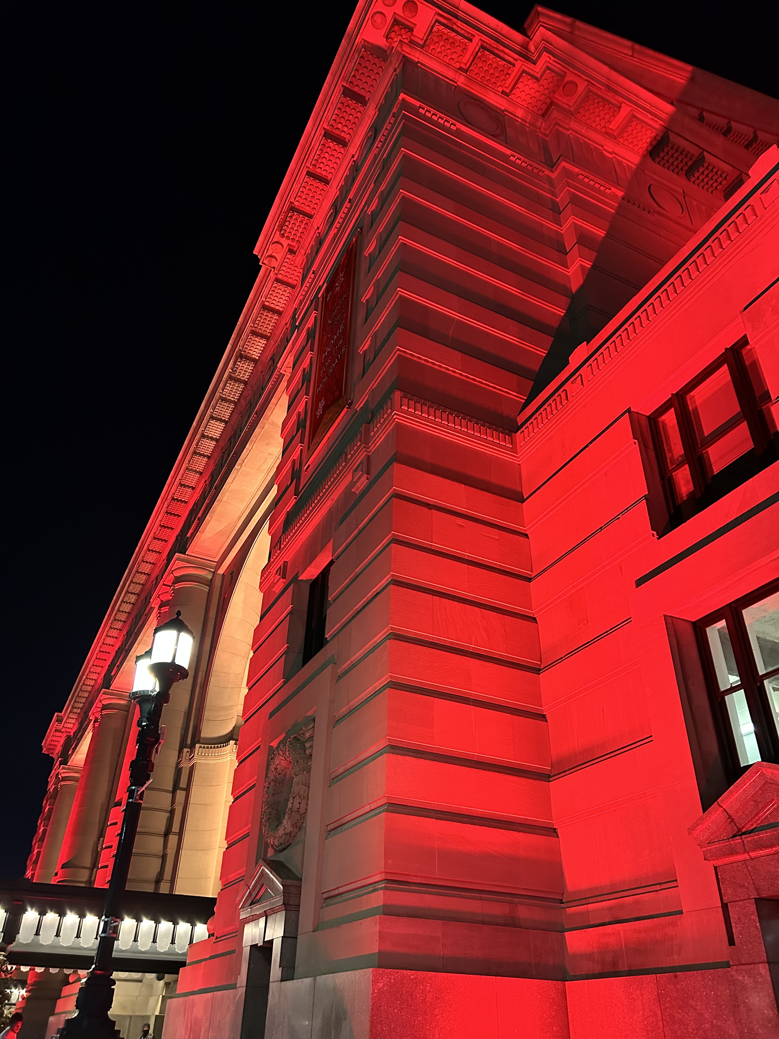 You already know if my night started on the streetcar, we’re pretty ok. Union Station was glowing red like Rudolph’s nose when we pulled up (I know it’s red for the Chiefs, but in today’s story its for Christmas) and the moon was huge and amazing. It was just the most perfect post-Thanksgiving way to officially kick off Christmas, minus the cold.